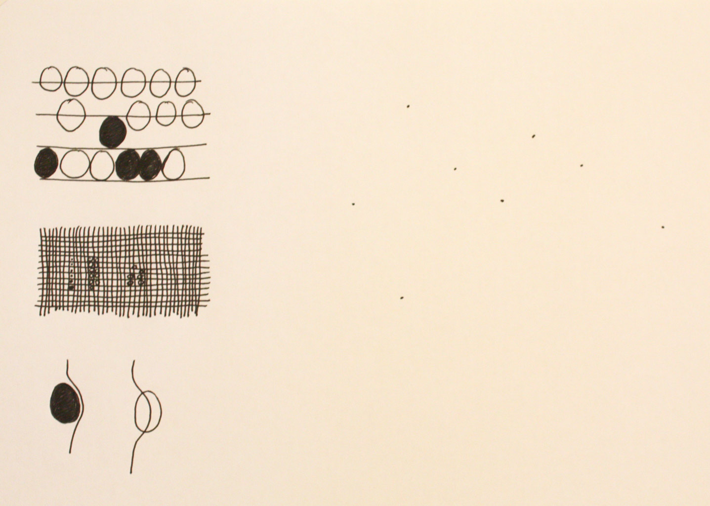 And dots and holes. Black dots, white dots, on the line, through the line, in a line, pushing against a line, no line, free floating, lots of them or only one.